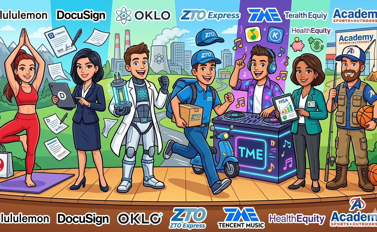 Earnings Edge for None: Setups for lululemon, DocuSign, Oklo, Tencent Music, ZTO Express, HealthEquity, Academy Sports and Outdoors, and…