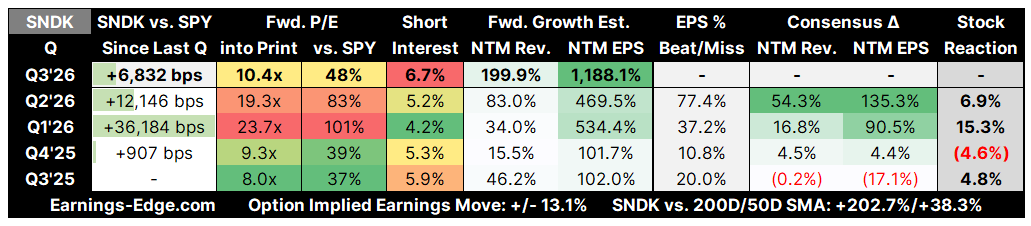 A very big week with SanDisk (SNDK), Western Digital (WDC), and Seagate (STX) all reporting quarterly results. It goes without saying that there is considerable upside already baked into these results, so take Consensus estimates with a grain of salt: