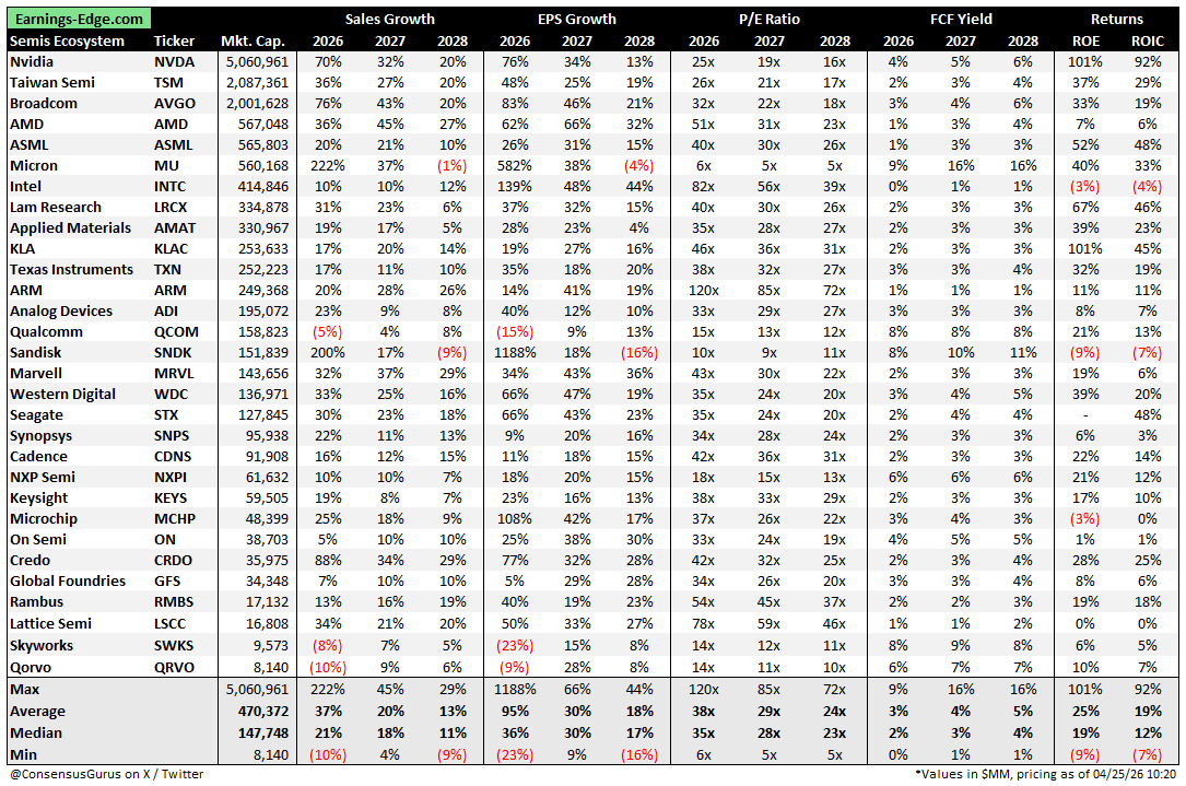 Saturday Comp Sheet Dump: Excel File with Semiconductor Ecosystem, Restaurants, Used Car Dealers, Airlines, Homebuilders, Furniture, and Drink Makers
